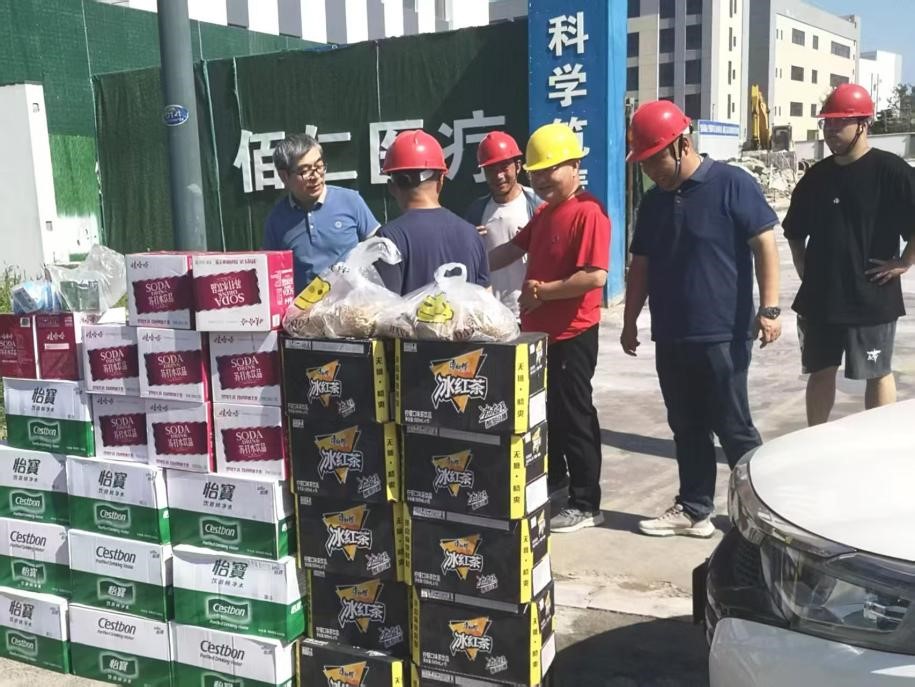 龍城七月,驕陽灼灼,酷熱難耐。為關(guān)愛廣大職工和班組工人的身體健康,確保公司夏季高溫施工安全。7月2日至7月10日,在公司黨委書記總經(jīng)理蔣林紅、工會(huì)主席副總經(jīng)理趙恒禮的帶領(lǐng)下,公司組織辦公室、工程管理部、安全管理部的負(fù)責(zé)人和公司各級(jí)文明實(shí)踐站點(diǎn)的志愿者,組成兩支高溫慰問服務(wù)隊(duì),集中九天時(shí)間,對(duì)公司奮斗在高溫一線廣大職工和班組工人,進(jìn)行了慰問。及時(shí)把公司配備的夏令勞保用品、防暑降溫物品飲品藥品等,配送到各施工班組;及時(shí)把市住建局工聯(lián)會(huì)發(fā)放的飲料和飲用水等慰問物品,分發(fā)到每一個(gè)職工手中。在高溫慰問期間,公司高溫慰問服務(wù)隊(duì),還對(duì)各基層單位夏季施工安全工作,進(jìn)行了針對(duì)性的督導(dǎo)和檢查,確保一方平安。